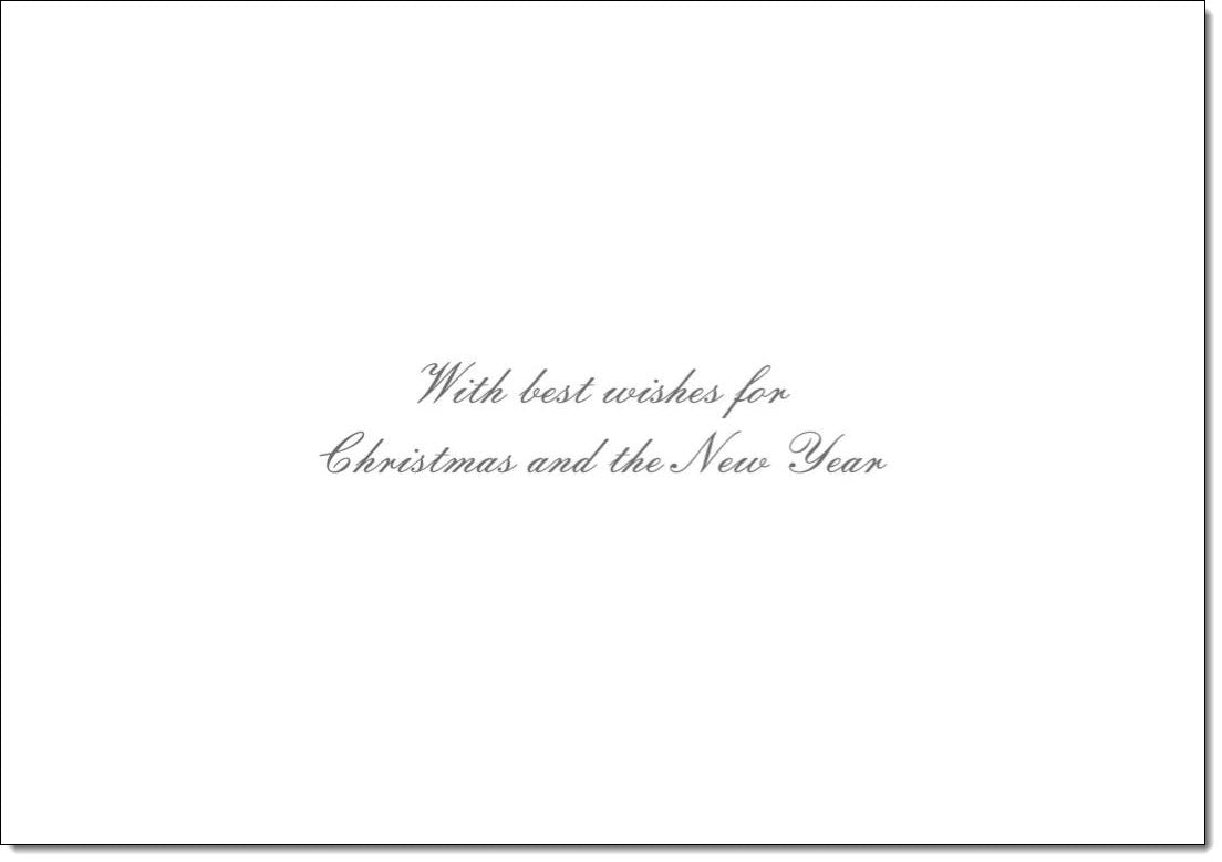 Pack of 10 premium Christmas cards. The same high quality cards as sold individually in High Street stores. Printed in the UK. The message inside each card reads 'With Best Wishes for Christmas and the New Year'. Card size is approx. 19.5 x 13.5cm. Supplied with plain envelopes for sending. Post with standard letter postage.