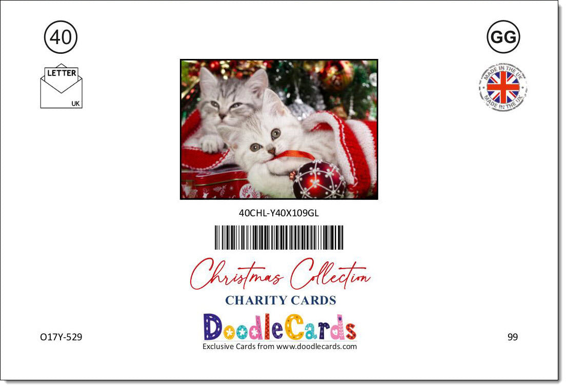 Pack of 10 Charity Christmas Cards Two Kittens under the Tree