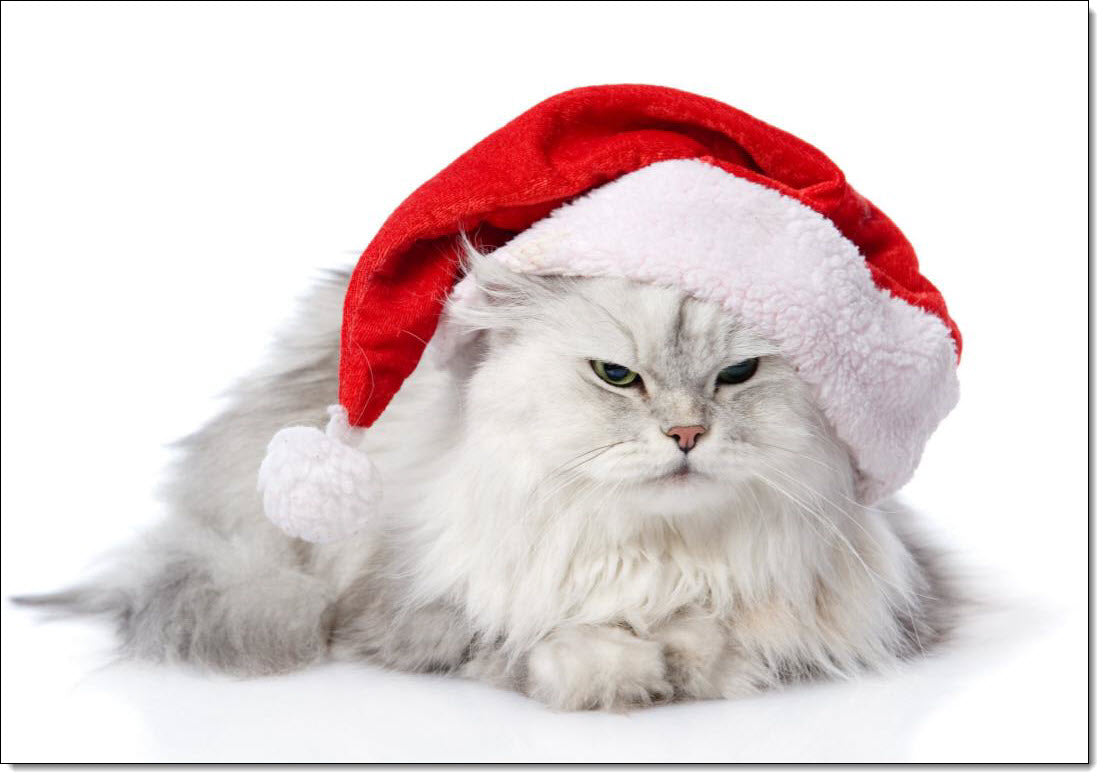 Pack of 10 Christmas Cards Cat in Santas Hat