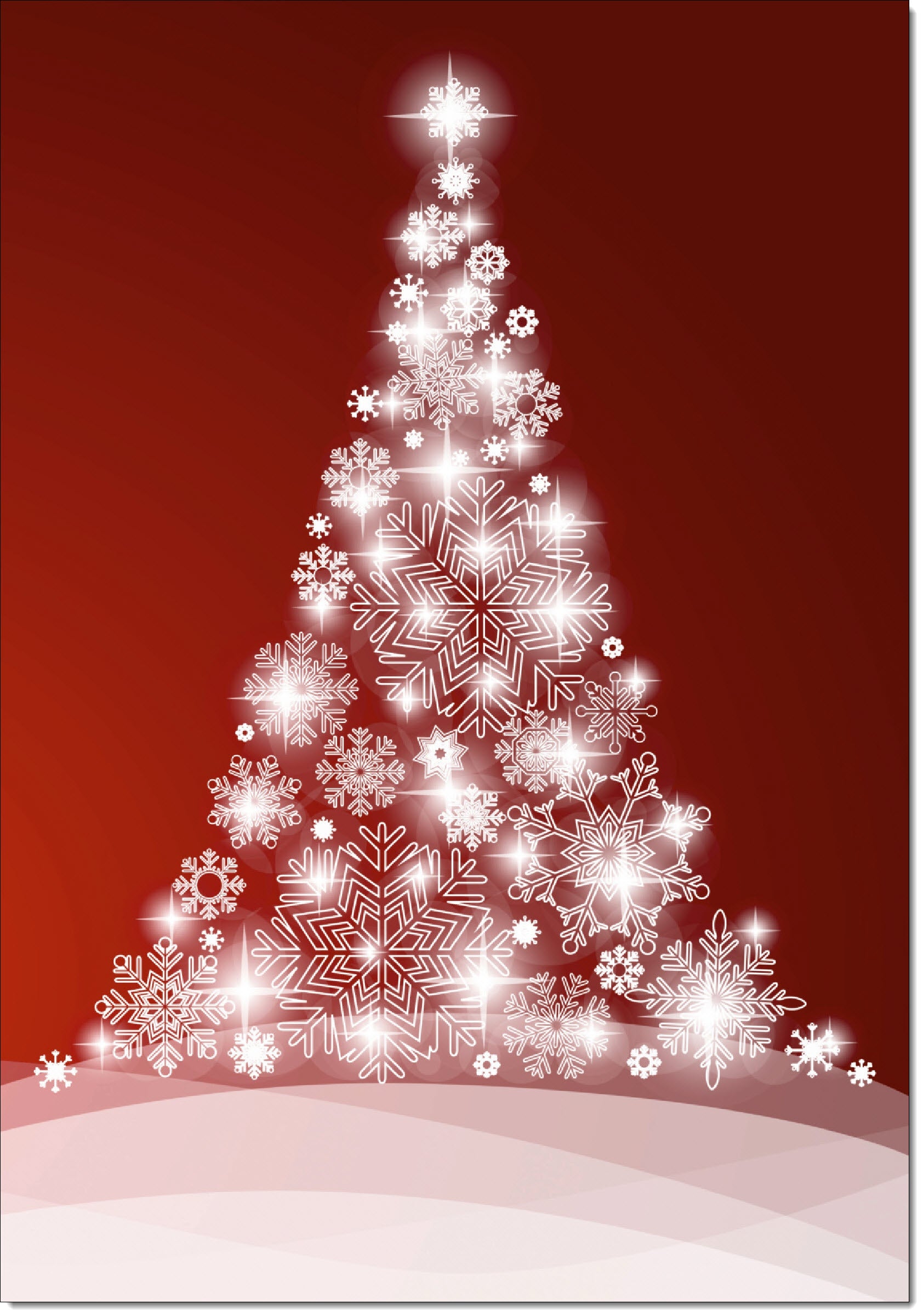 Pack of 10 Christmas Cards Abstract Snowflake Christmas Tree