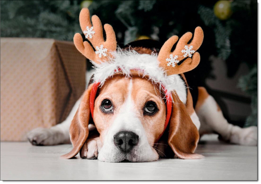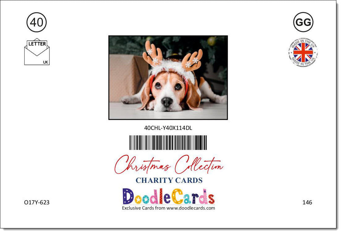 Pack of 10 Charity Christmas Cards Beagle in Reindeer Antlers