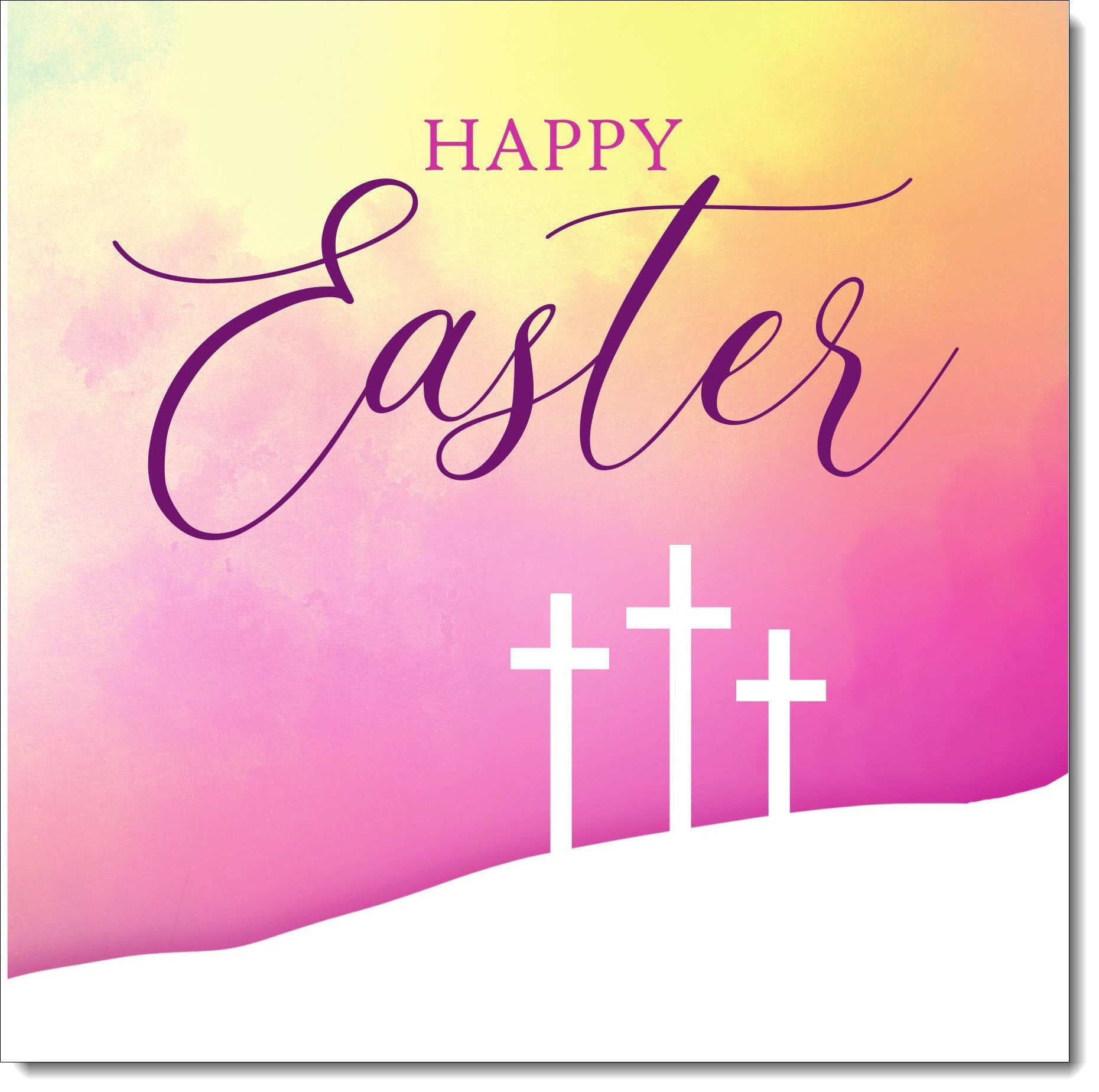 Pack of 10 Easter Cards Three Crosses Pink Sky