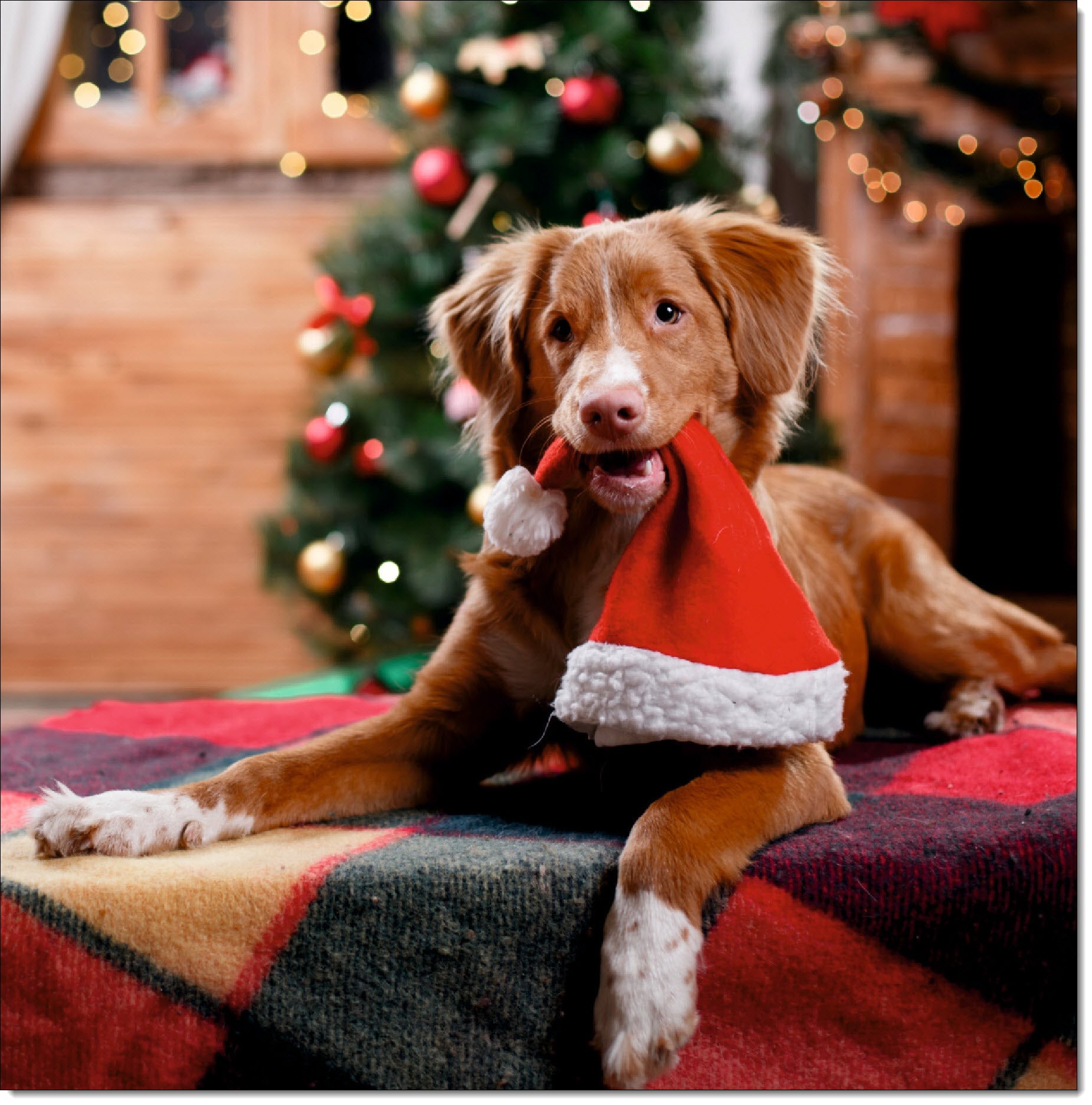 Pack of 10 Square Christmas Cards Duck Tolling Retreiver and Santa Hat