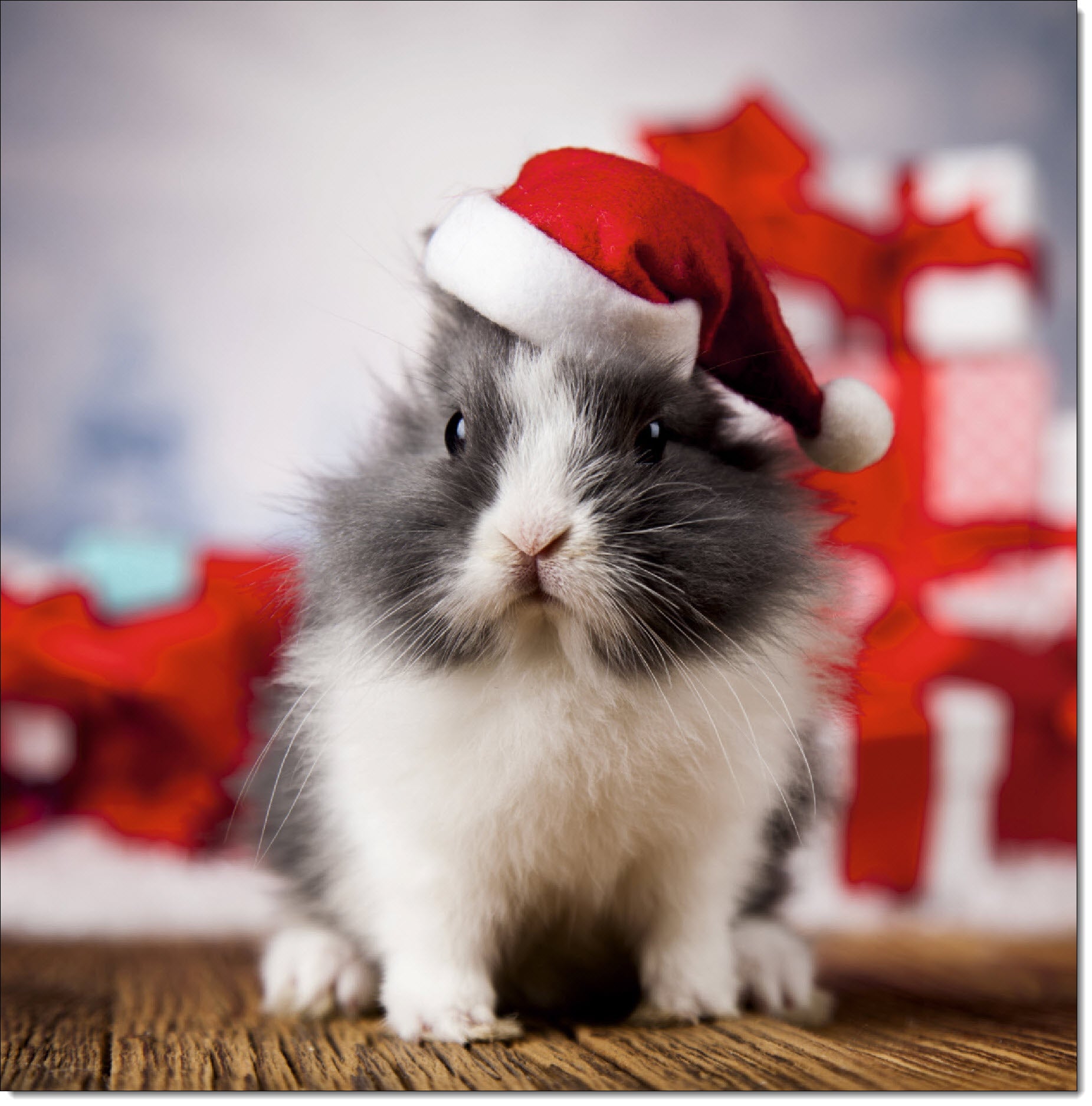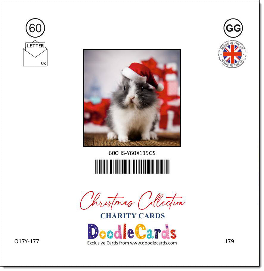 Pack of 10 Square Charity Christmas Cards Rabbit in Santas Hat
