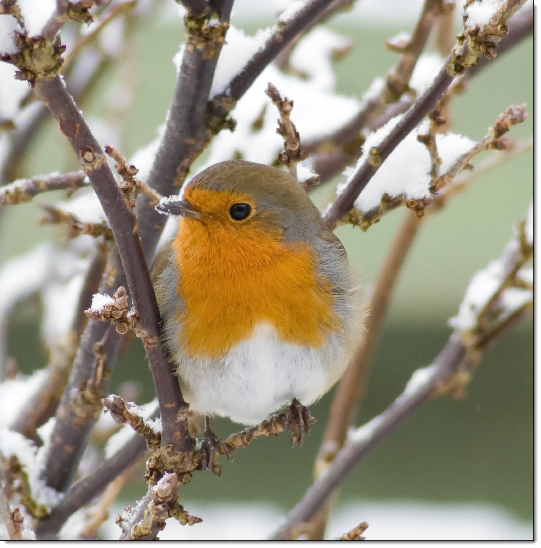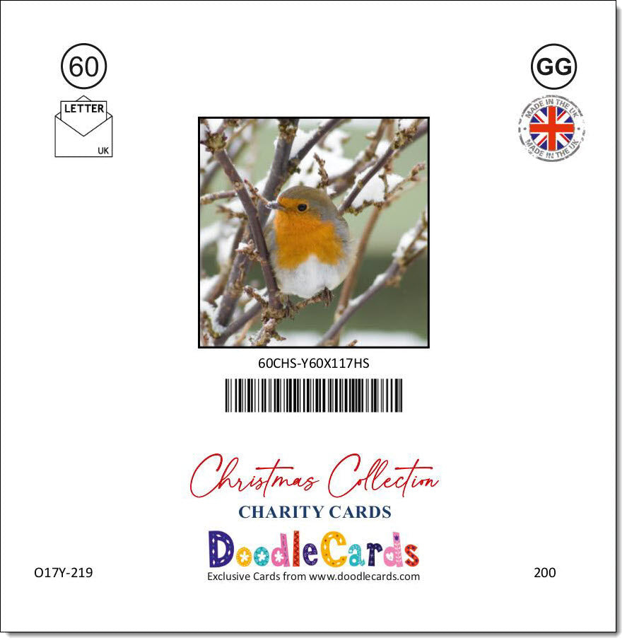 Pack of 10 Square Charity Christmas Cards Robin in the Snow