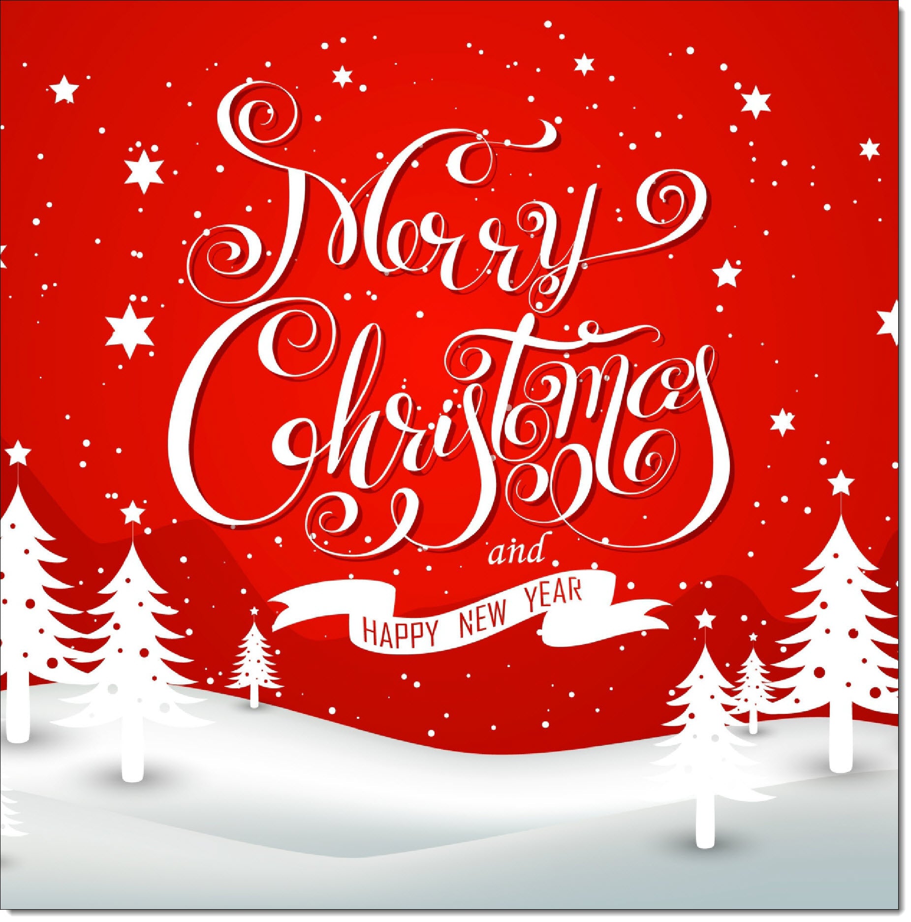 Pack of 10 Square Christmas Cards Red Merry Christmas
