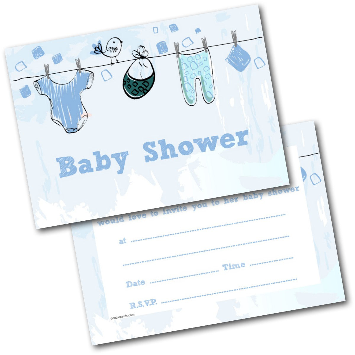 Baby Shower Invitations Baby Clothes Blue Boys Male Pack of 20 Invites & Envs