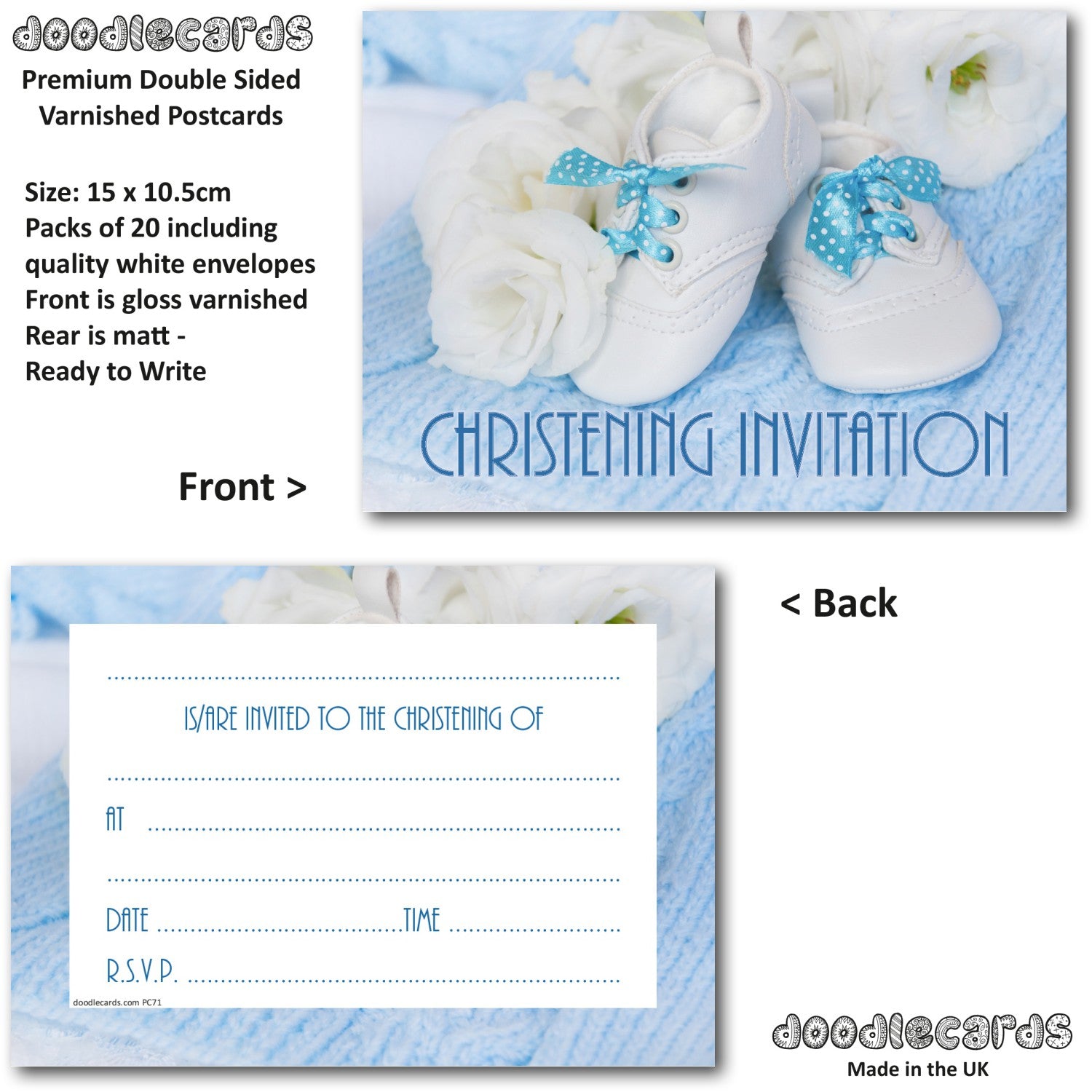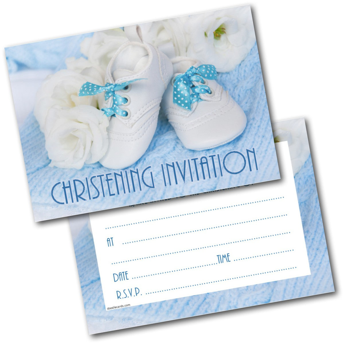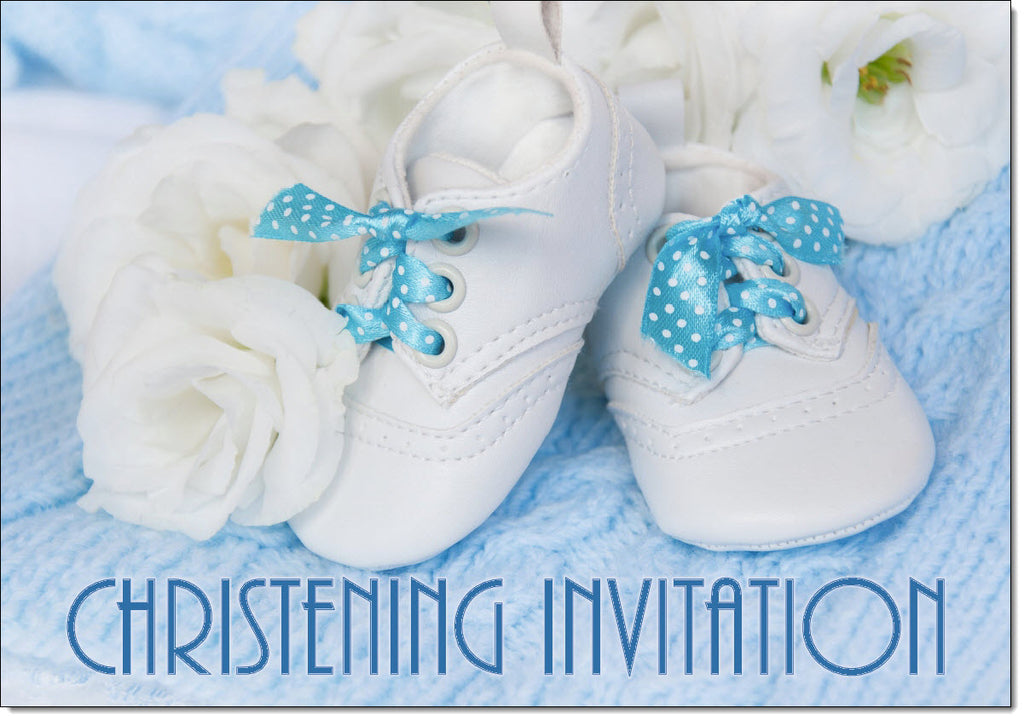 Christening Invitations Baby Shoes Blue Boy Pack of 20 Invites & Envelopes