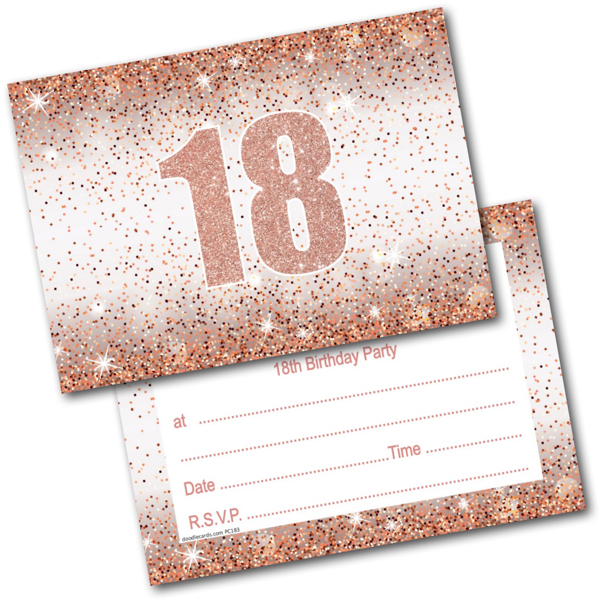 18th Birthday Party Invitations Rose Gold 20 Cards and 20 Envelopes
