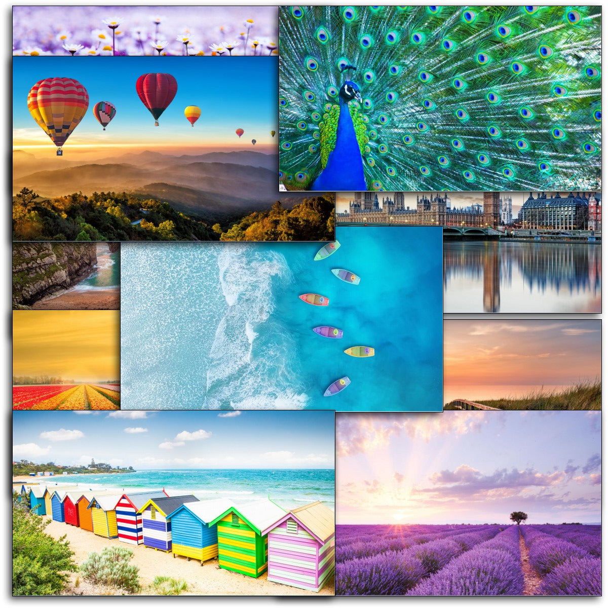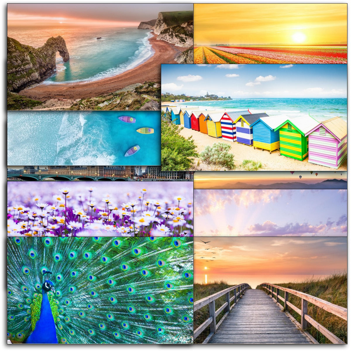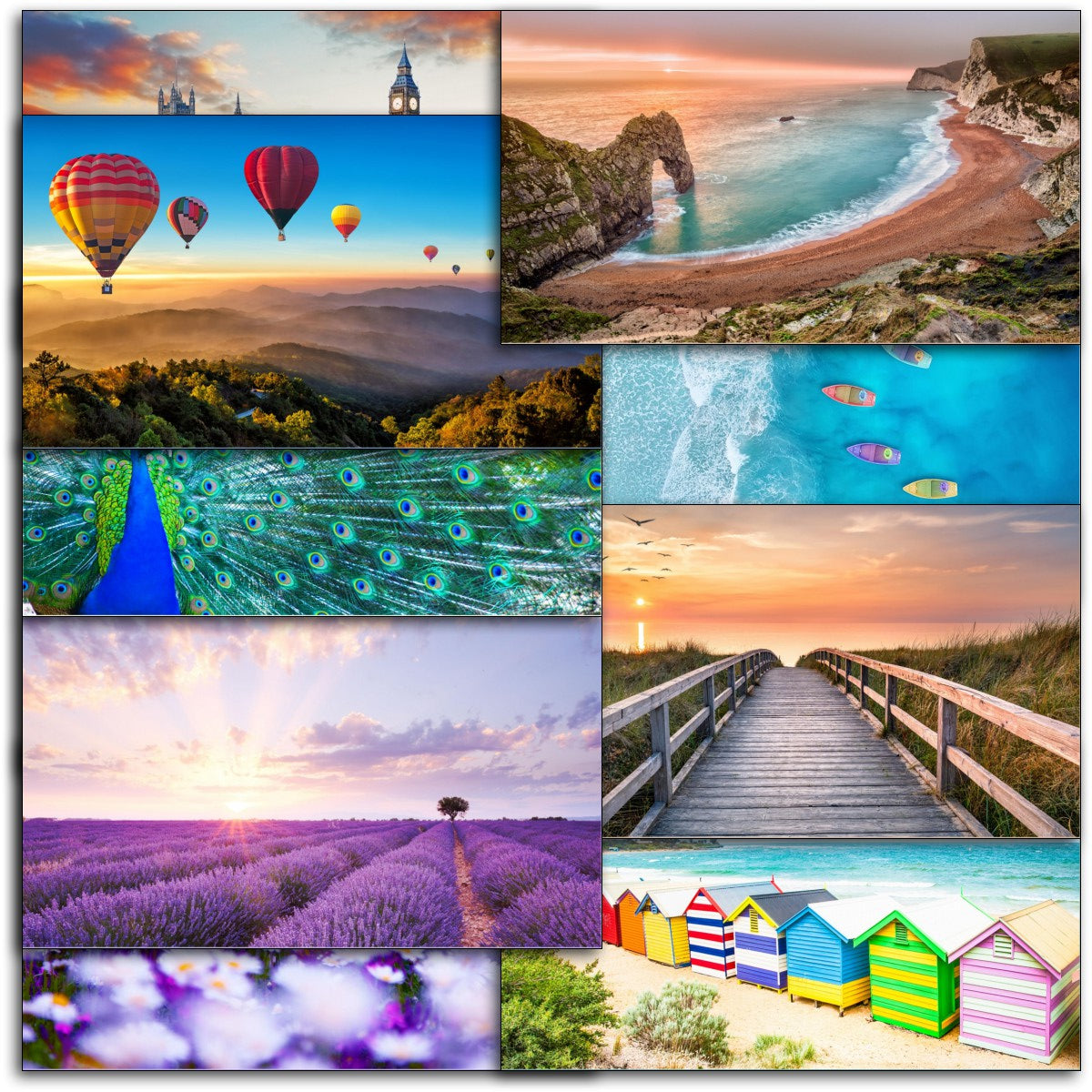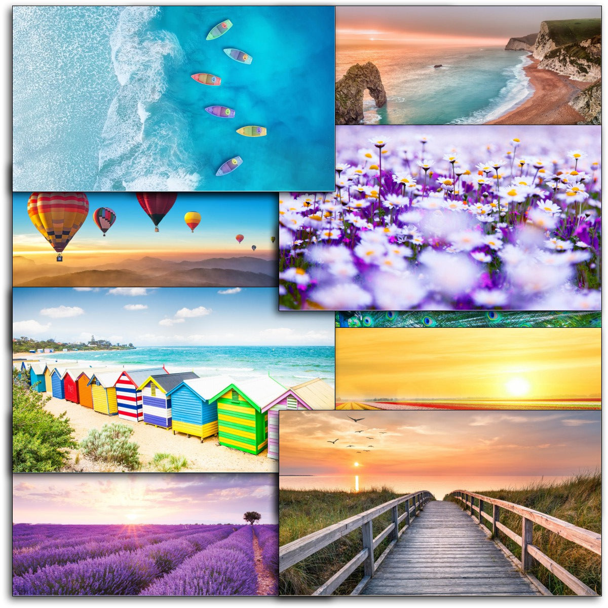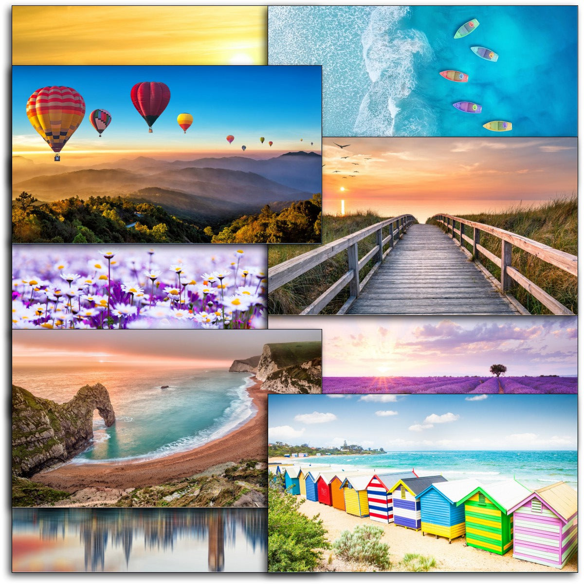 DESIGNS ⭐No more than one card of any design. Therefore pack consists of 10 different cards as shown. Flowers, Durdle Door, Beach, Sea, Beach Huts, Hot Air Balloons, Sunset, Lavender Fields, Peacock, Big Ben, London, Houses of Parliament, Boats, Female, Male⭐